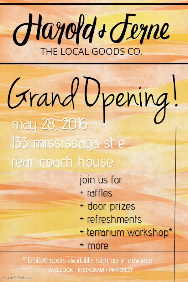 This weekend is the first Downtown Orillia Sidewalk Sale of the season + the perfect time to finally host a Grand Opening! You'll see Harold + Ferne on the main street beside Tre Sorelle on Friday + Saturday but if you venture down the alley on Saturday there will be a lot of fun things you won't want to miss...