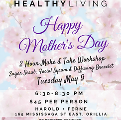 Join Melissa Van Dam for another Essential Oils Make + Take! This month we chose a Mother’s Day theme, creating products to pamper Mom (or yourself) with. We’ll be creating a delicious sugar body scrub that will leave your skin feeling silky smooth + a nourishing facial serum that will rejuvenate + brighten, both infused with the highest quality essential oils. We will also make a beautiful diffusing bracelet to bring your favourite oils wherever you go. Throughout the workshop we will explore the beneficial properties of each oil we use. For those of you gifting what you make, thoughtful packaging will be supplied! You will leave with a generous sample size of each product as well as your one of a kind diffusing bracelet + the recipes, experience + confidence to create these products again on your essential oils journey!